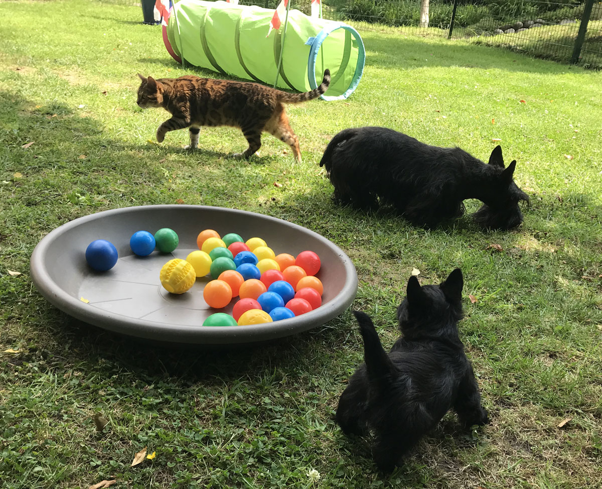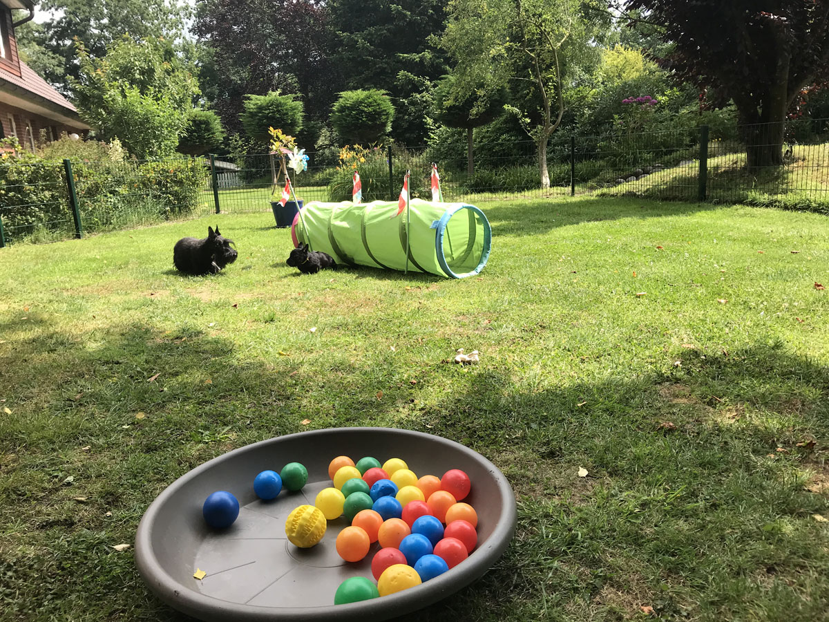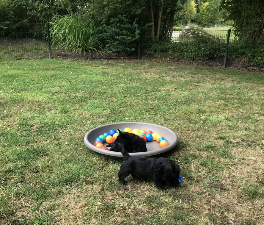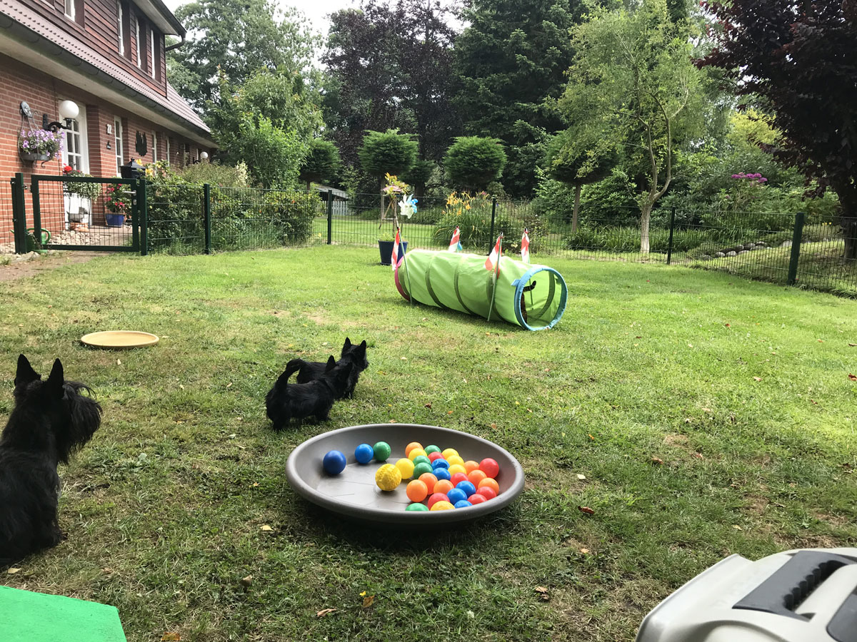 Bei uns wachsen die Welpen im Haus auf. Dabei ist Familienanschluss garantiert. Durch Veränderungen in den räumliche Gegebenheiten, interessante und variierende Spielmöglichkeiten, Besucher etc. werden die Welpen auf ihr zukünftiges Leben bei ihren neuen Besitzern vorbereitet.