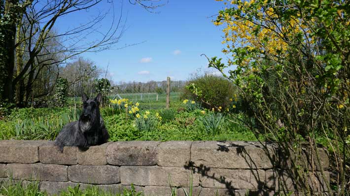 Unsere Hunde leben mit uns im Haus umgeben von einem großen Garten. Hier können sie sich zwischen den Spaziergängen und anderen Unternehmungen austoben, Mäuse jagen, buddeln (sehr zu unserem Leidwesen) oder auch nur in der Sonne liegen (wenn sie denn scheint) und ausruhen. Nur der Ort hat sich geändert. Es ist nicht mehr Remscheid, sondern Achtrup in Nordfriesland in der Nähe von Leck und kurz vor der dänischen Grenze.