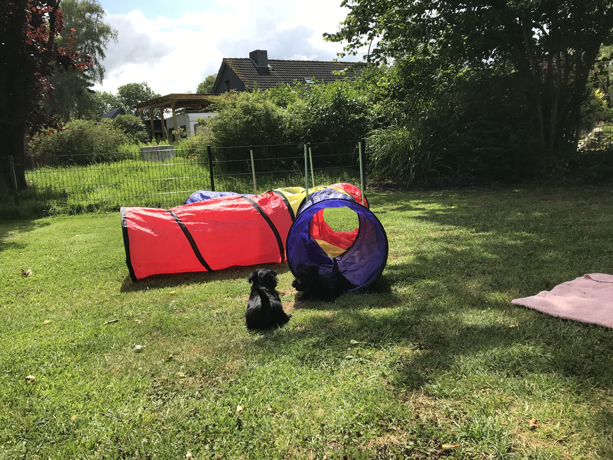 Bei uns wachsen die Welpen im Haus auf. Dabei ist Familienanschluss garantiert. Durch Veränderungen in den räumliche Gegebenheiten, interessante und variierende Spielmöglichkeiten, Besucher etc. werden die Welpen auf ihr zukünftiges Leben bei ihren neuen Besitzern vorbereitet.